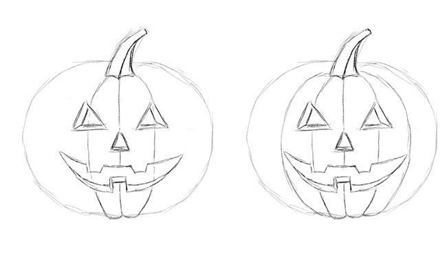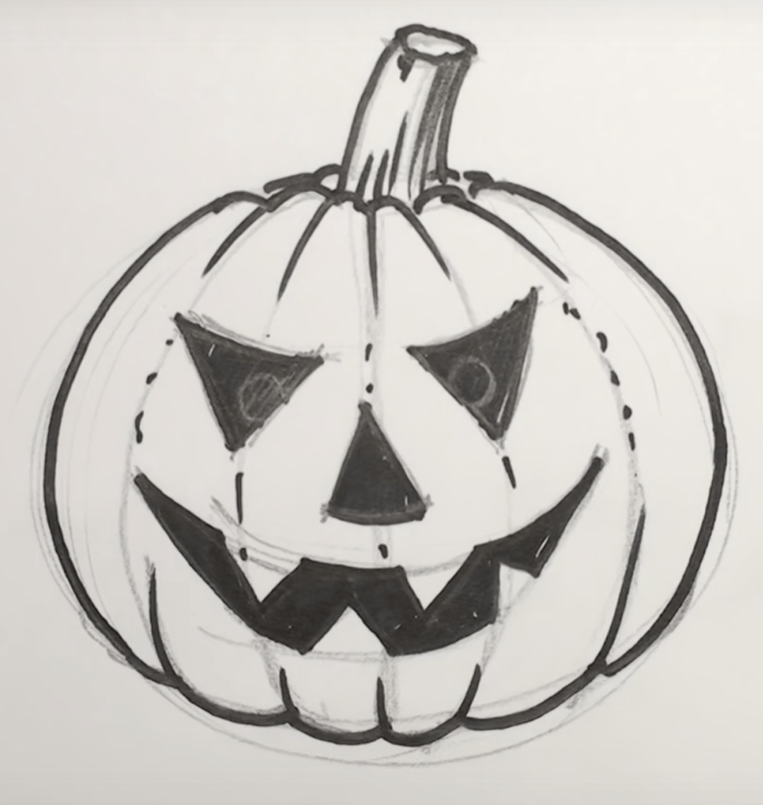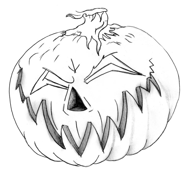 ![Рисунок тыковки на Хэллоуин карандашом]()
