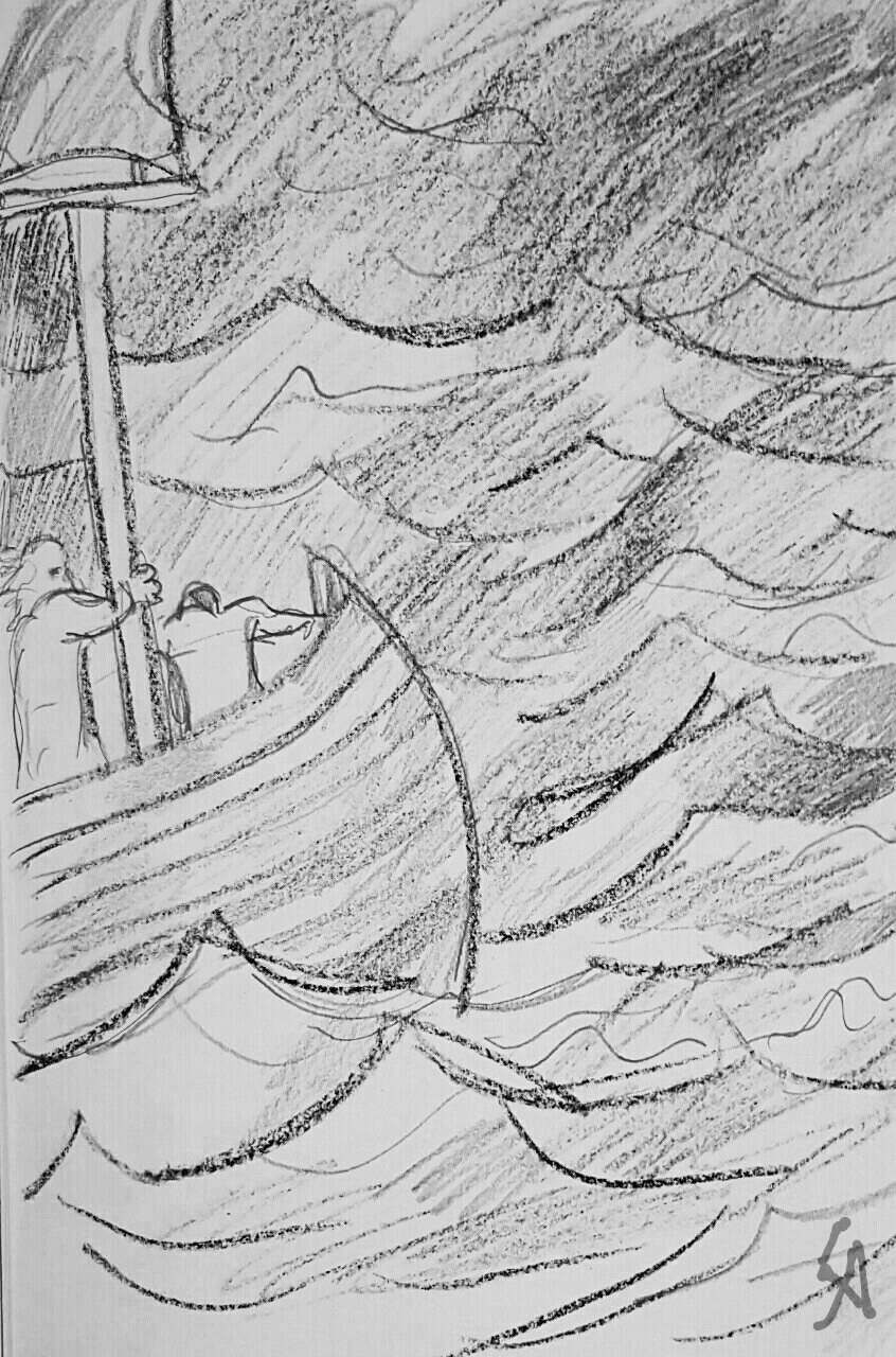 ![Рисованый кораблив к шторме]()