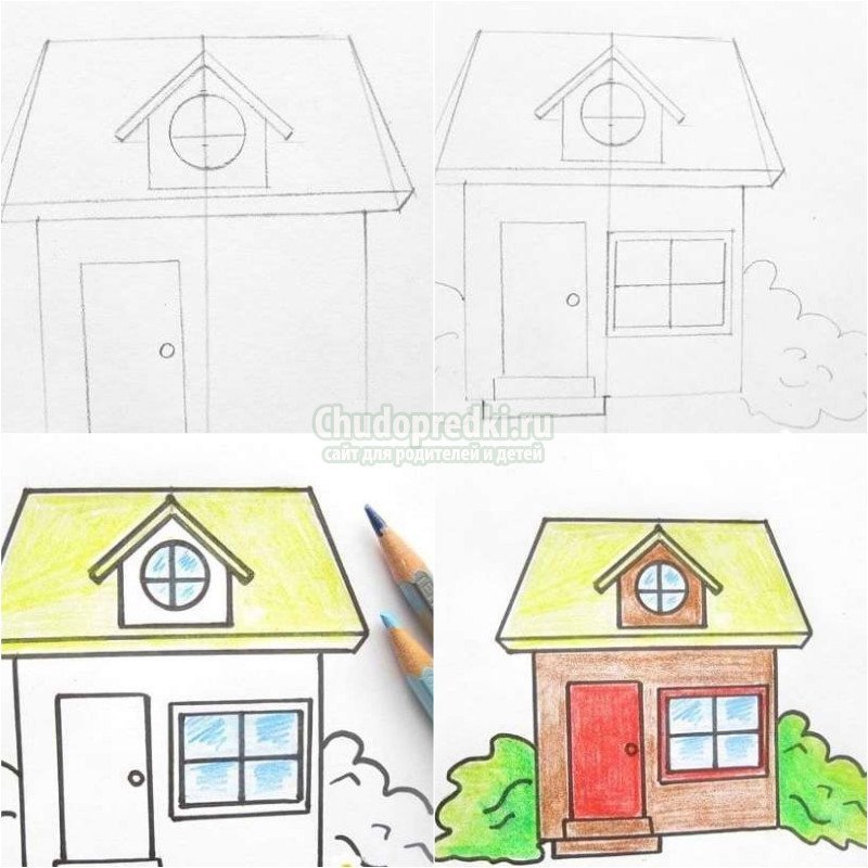 Рисование домика карандашом