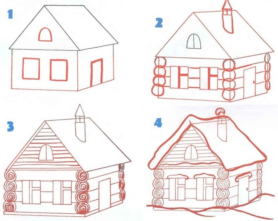 ![Рисунки дома ручкой поэтапно]()