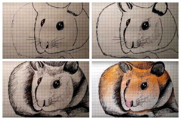 Поэтапный рисунок хомяка