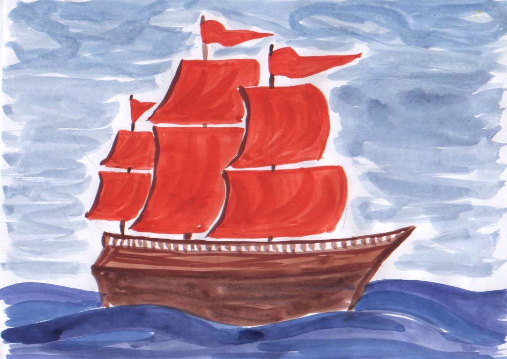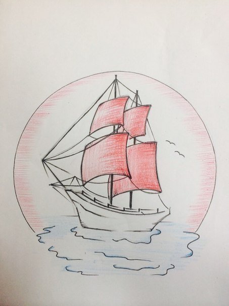 ![Кораблик с алыми парусами рисунок легкий]()