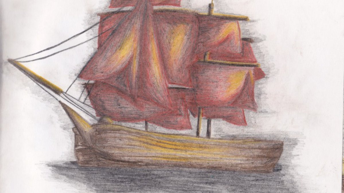 Иллюстрация Алые паруса карандашом