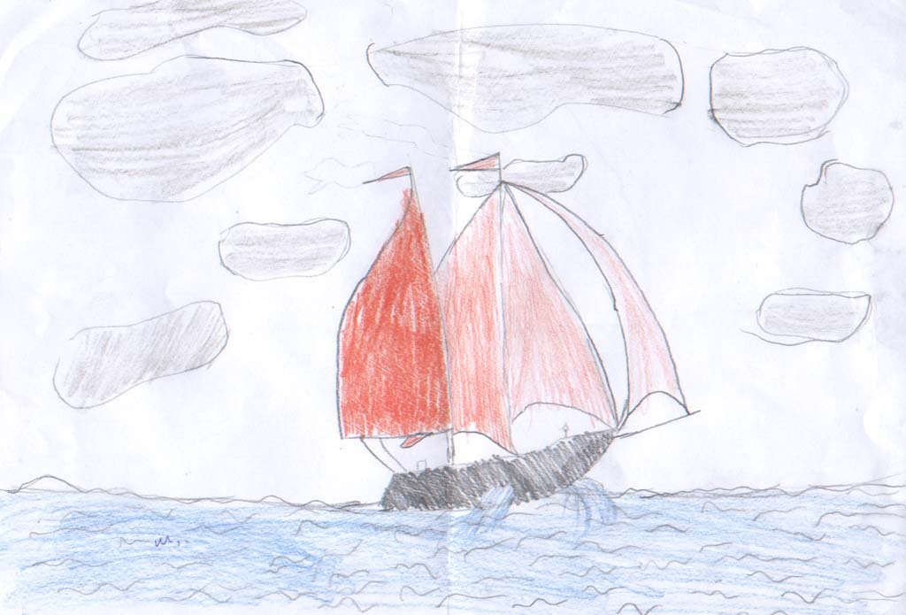 Кораблик с алыми парусами рисунок легкий