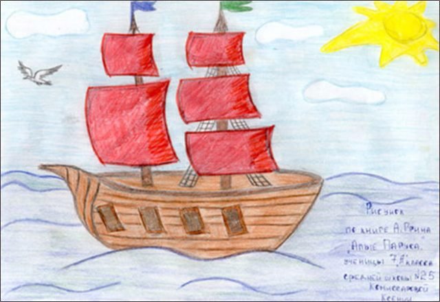 ![Рисунок на тему Алые паруса]()
