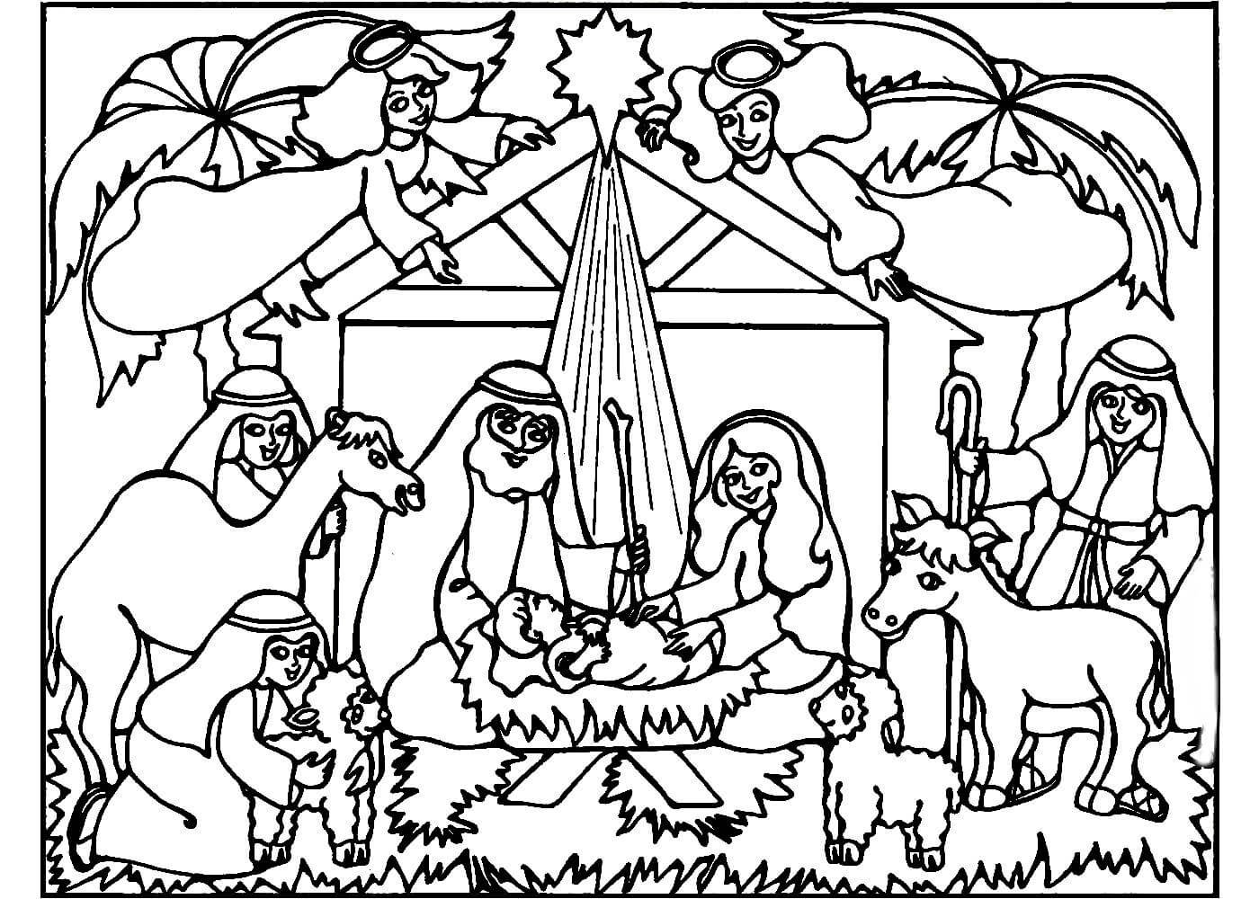 Рождественский вертеп раскраска