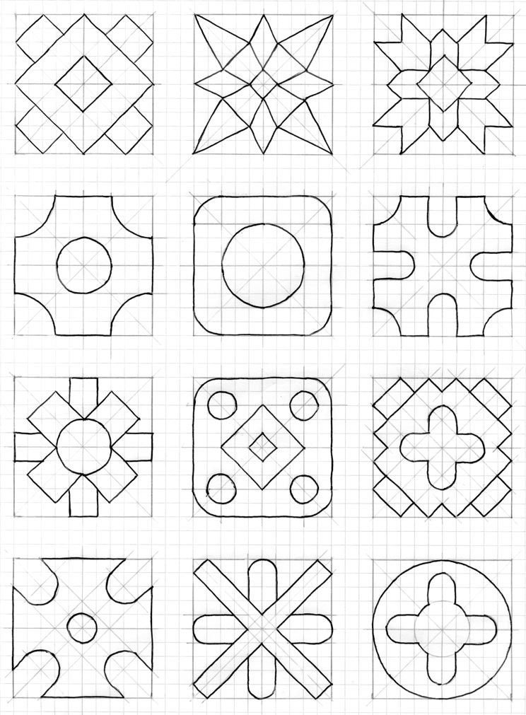 ![Эскиз геометрического орнамента мозаики]()