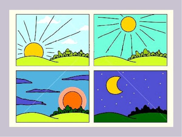 Карточки с изображением частей суток
