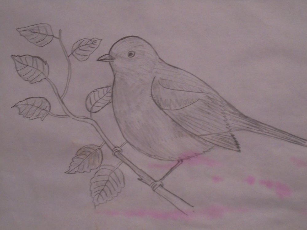 ![Воробей на ветке рисунок карандашом]()
