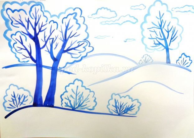 Зимний пейзаж рисование для детей