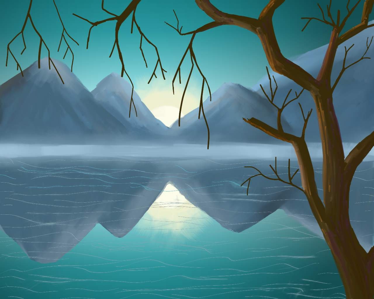 Пейзаж в холодных оттенках легкие
