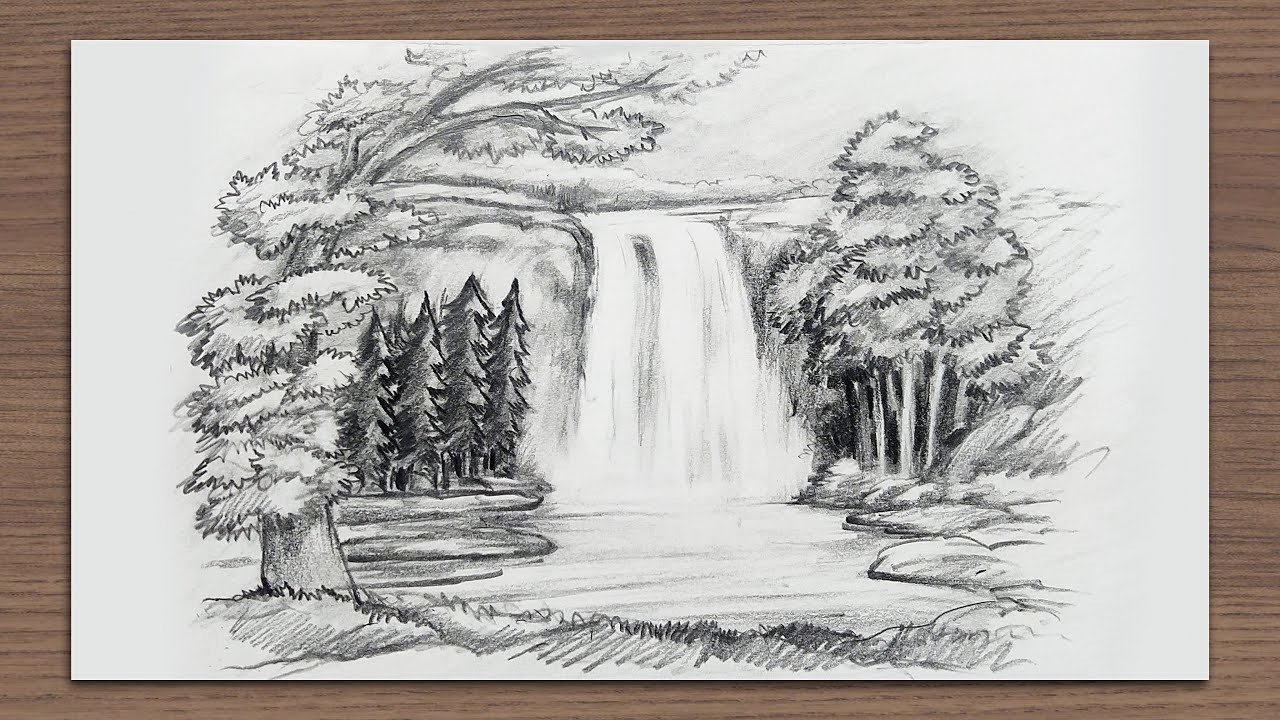 Водопад рисунок карандашом