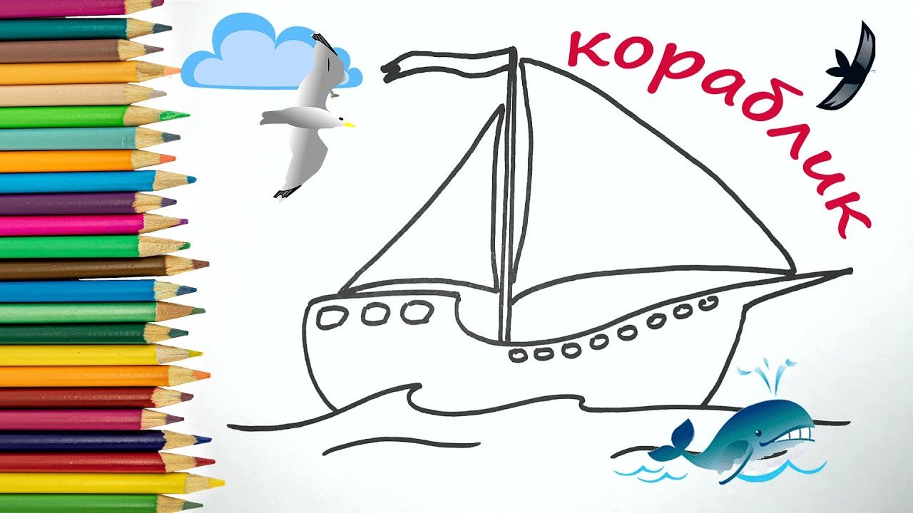 ![Рисование корабля для детей]()