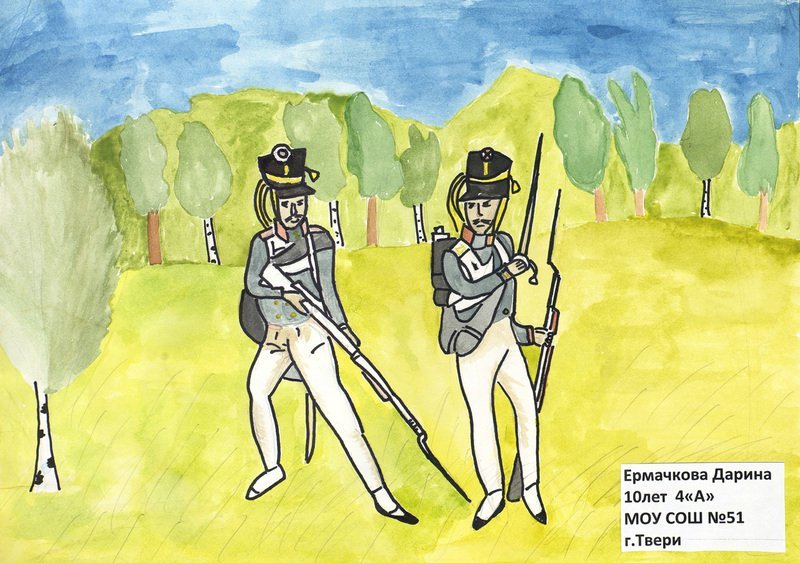 ![Детские рисунки Бородинское сражение 1812 года]()