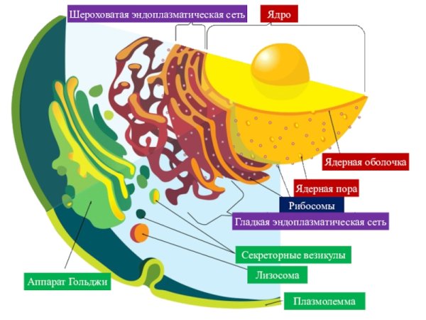 ![Схема строения клетки. Эндоплазматическая сеть.]()