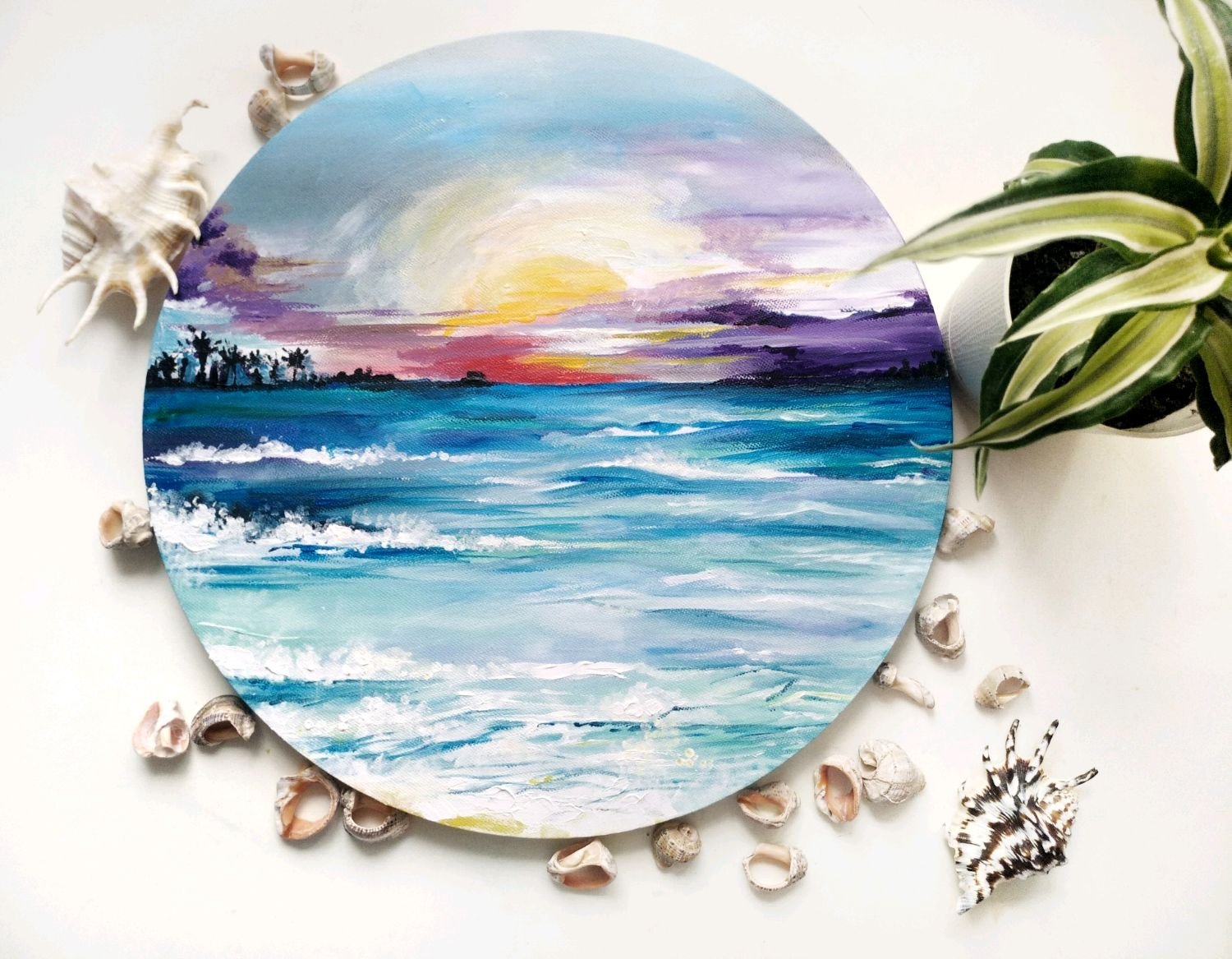 Рисунки на круглом холсте представляют собой легкие и воздушные произведения искусства. Благодаря форме холста, они обретают особую грацию и изящество, добавляя нотку оригинальности в интерьер. Легкость рисунков на круглом холсте передается через использование светлых и прозрачных тонов, мягких линий и нежных оттенков. Их эффектность состоит в том, что они придают помещению легкость и свежесть, создавая атмосферу спокойствия и гармонии. Рисунки на круглом холсте - это прекрасный способ украсить дом или офис, подчеркнуть его стиль и индивидуальность. Они станут ярким акцентом, привлекающим внимание и создающим приятное настроение.