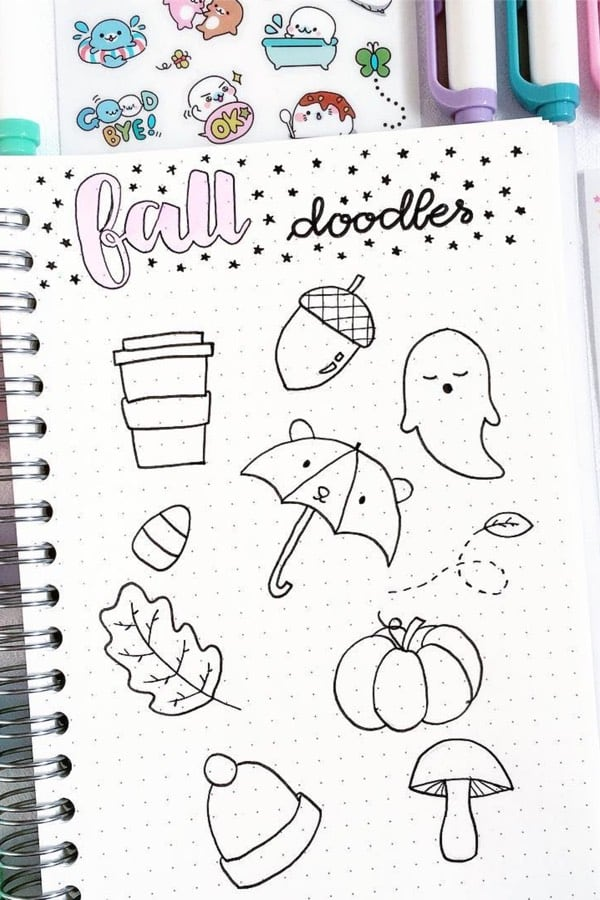 ![Идеи для рисования в ежедневнике]()