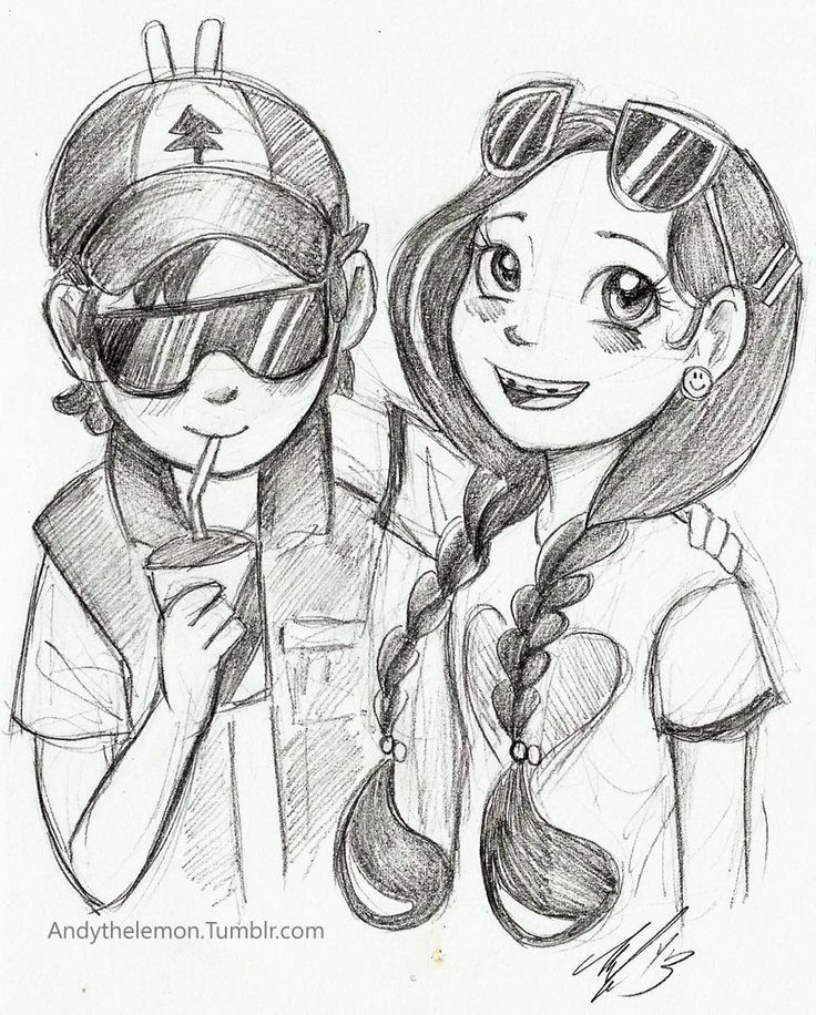 ![Гравити Фолз Мейбл и Пухля срисовать]()