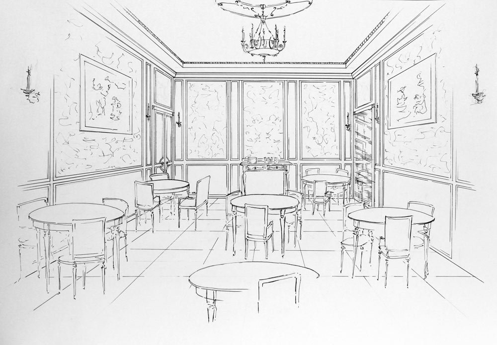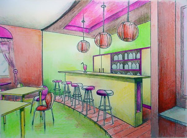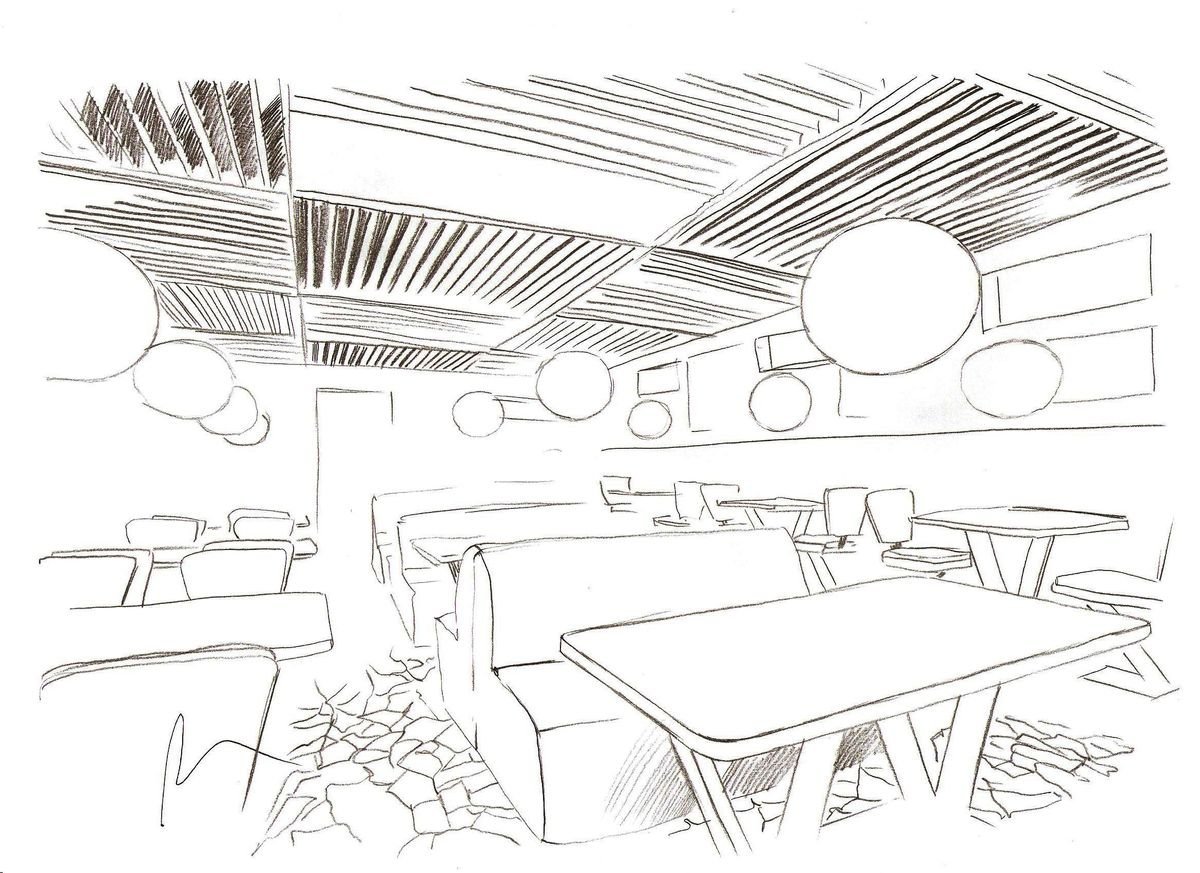 Интерьер кафе карандашом