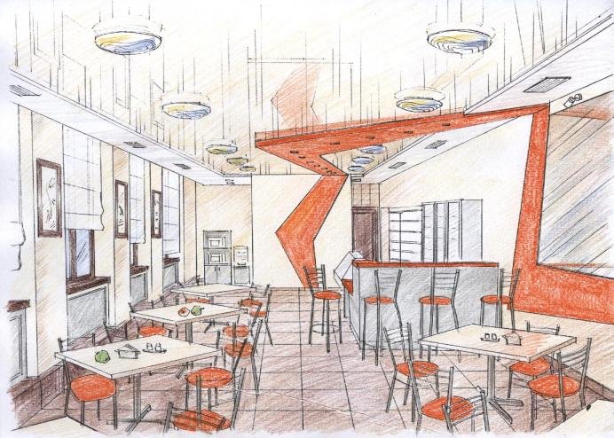 Эскиз интерьера кафе