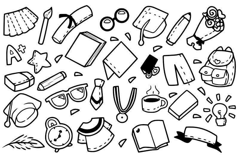 ![Черно белые школьные принадлежности]()