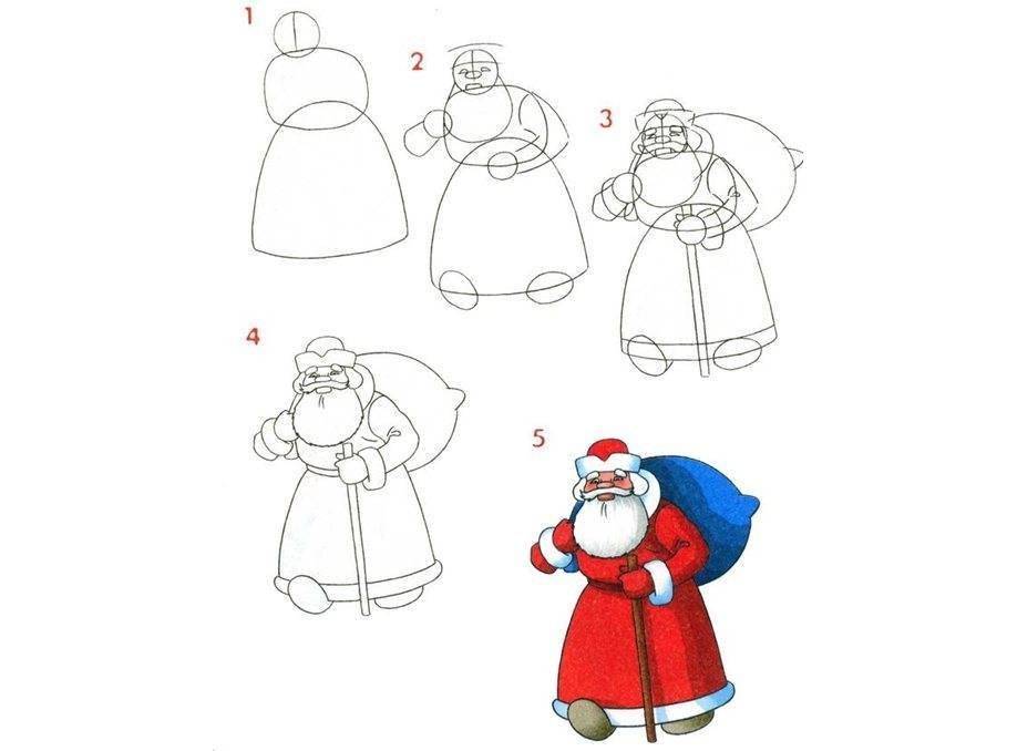 Поэтапное рисование Деда Мороза