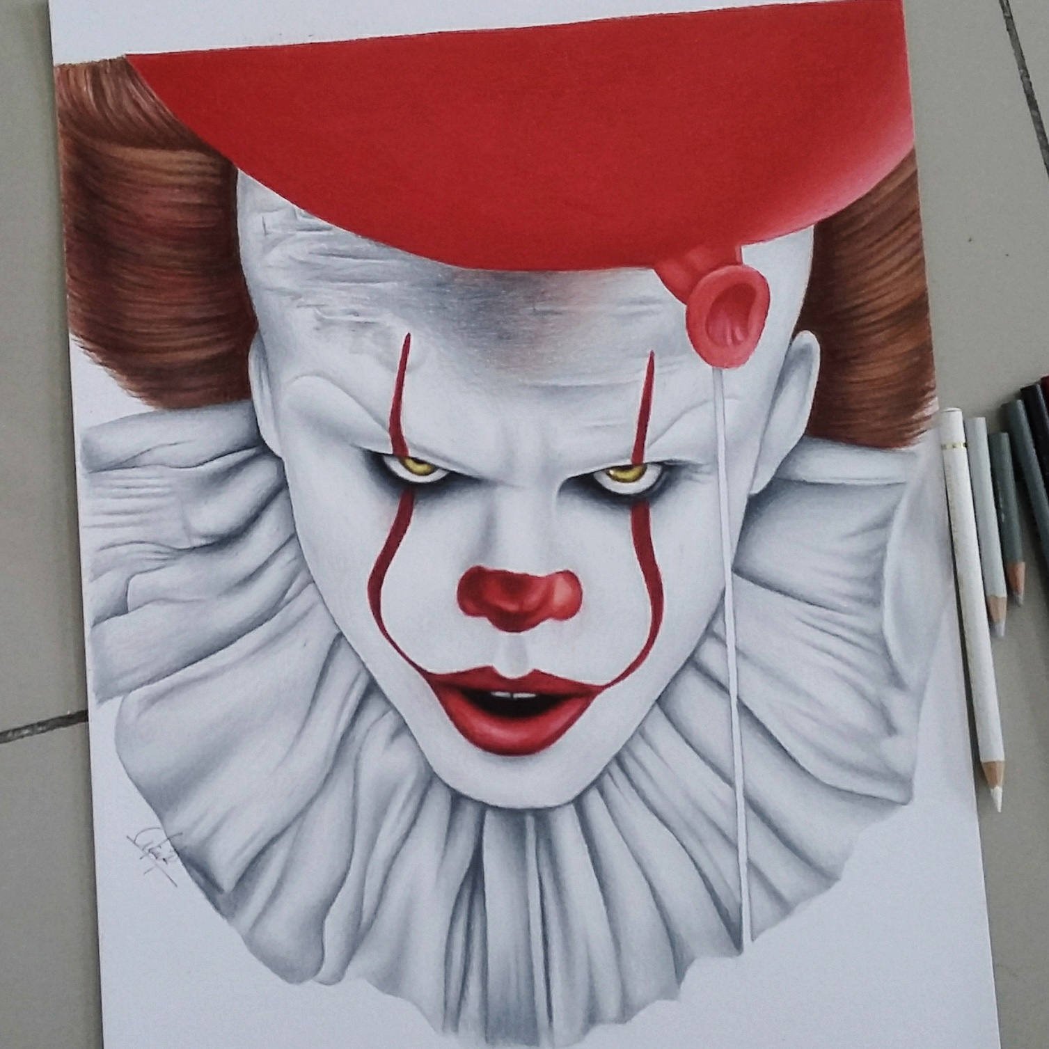 Страшный клоун карандашом