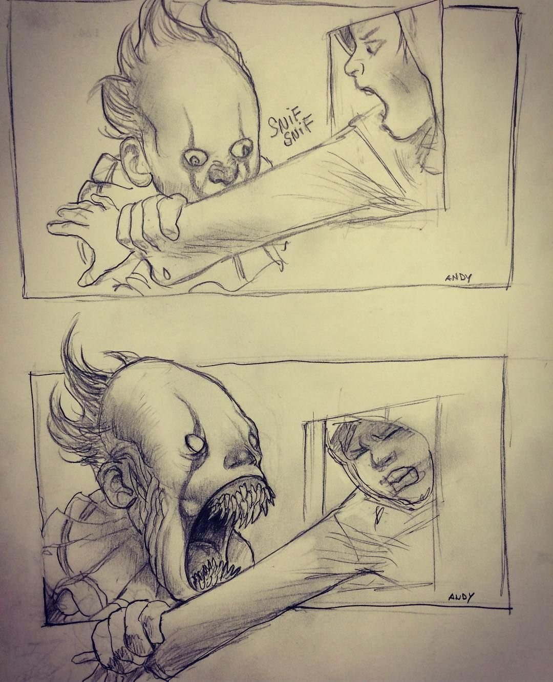 ![Клоун ПЕННИВАЙЗ простым карандашом]()