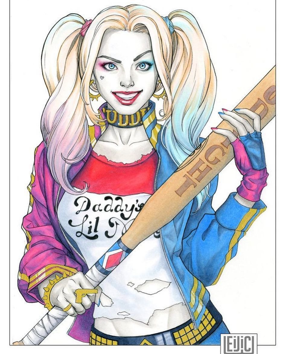 Харли Квинн - один из самых популярных персонажей комиксов и фильмов о Бэтмене. Ее образ неразрывно связан с яркими и эксцентричными рисунками, которые легко узнаваемы и часто становятся объектом восхищения и вдохновения для многих художников. Легкость воздушных линий и игра цветов в ее изображении придают рисункам Харли Квинн особую энергию и жизненность, отражая ее безумие и неординарность. Они демонстрируют ее яркий стиль и индивидуальность, притягивая внимание и вызывая положительные эмоции у зрителей. Все это делает рисунки Харли Квинн легкими, свежими и запоминающимися в мире искусства.