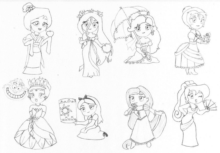 Принцессы для срисовки карандашом