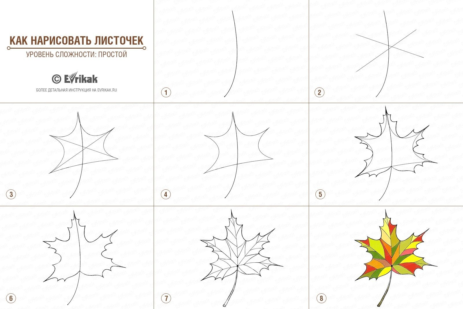 Поэтапное рисование осенних листьев