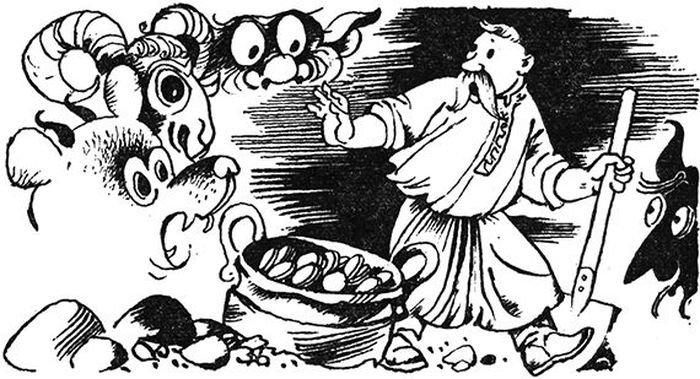 ![Иллюстрация к повести Гоголя Заколдованное место]()