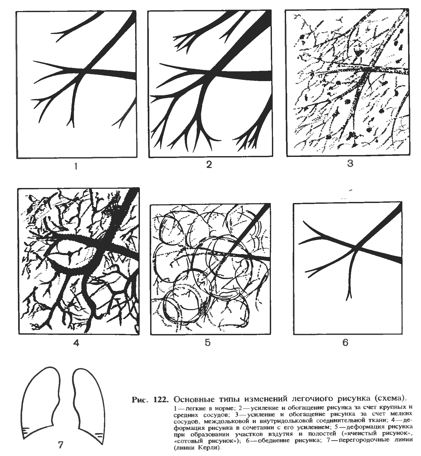![Усиление лёгочного рисунка на рентгенограмме]()