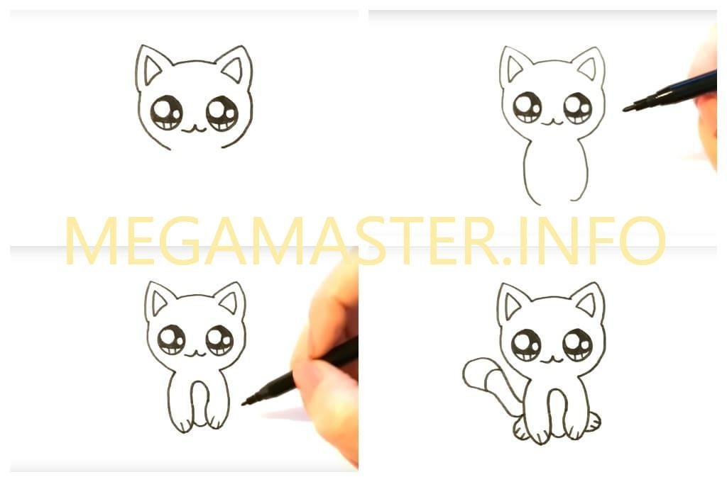 ![Как нарисовать милого котика поэтапно]()