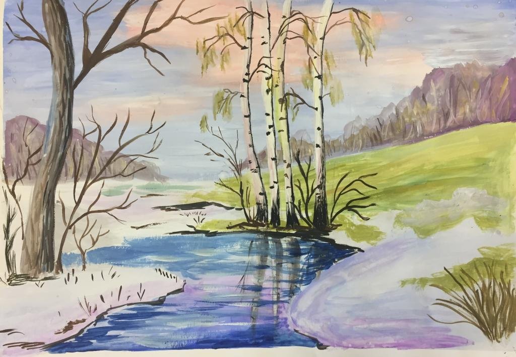 Рисование весеннего пейзажа