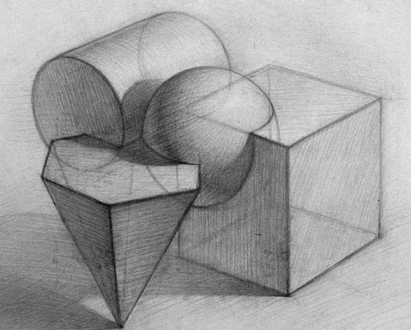 ![Натюрморт из геометрических тел (построение, перспектива)]()