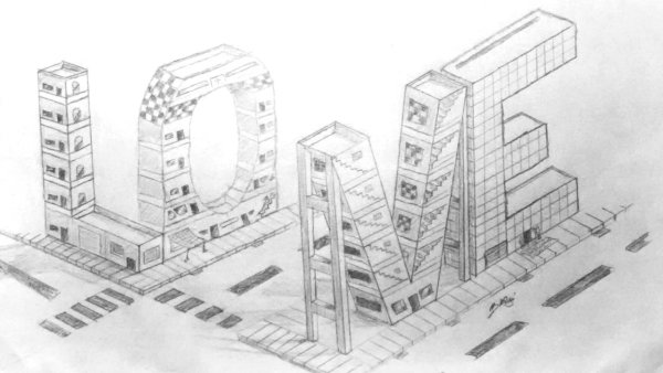 Здание будущего карандашом