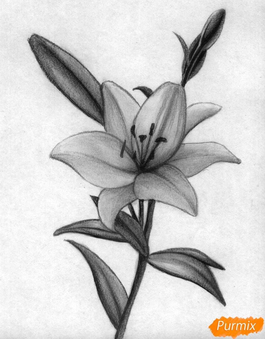 Поэтапное рисование лилии карандашом