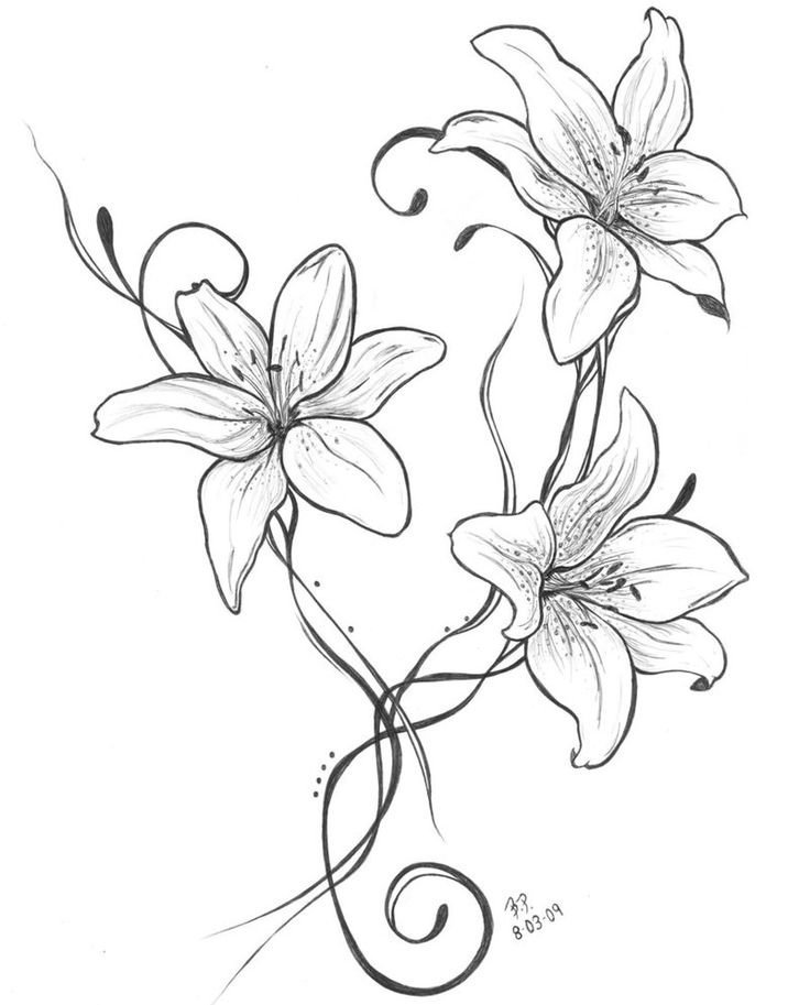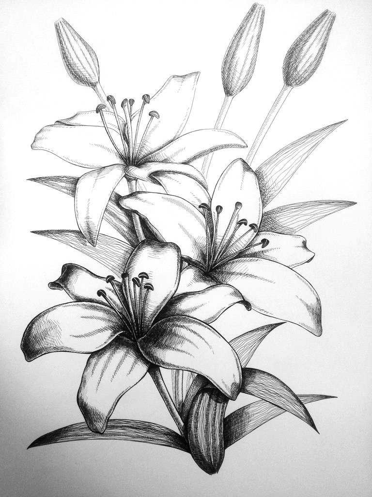 Лилии рисунок карандашом