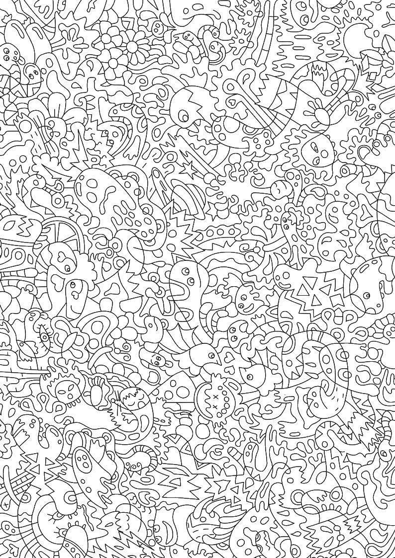 Рисунки для разукрашивания много деталей
