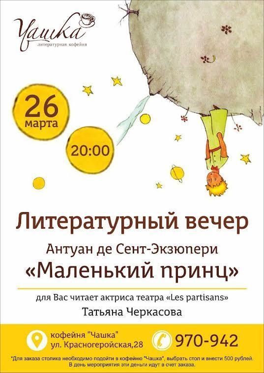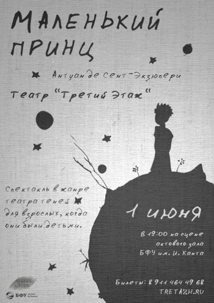 Погрузитесь в волшебный мир "Маленького принца" с помощью уникальной афиши, на которой изображен неповторимый рисунок. Этот замечательный художественный образ позволяет перенестись в мир философии и приключений, описанных в произведении Антуана де Сент-Экзюпери. Рисунок на афише передает нежность и мудрость главного героя и является отличным способом визуализации его подвижных историй. Каждая деталь этого рисунка проникнута значением и символикой, позволяя каждому зрителю почувствовать себя частью этого удивительного мира. Афиша с рисунком "Маленького принца" станет прекрасным дополнением к интерьеру любого жилья и прекрасным подарком для всех ценителей этого классического литературного произведения.