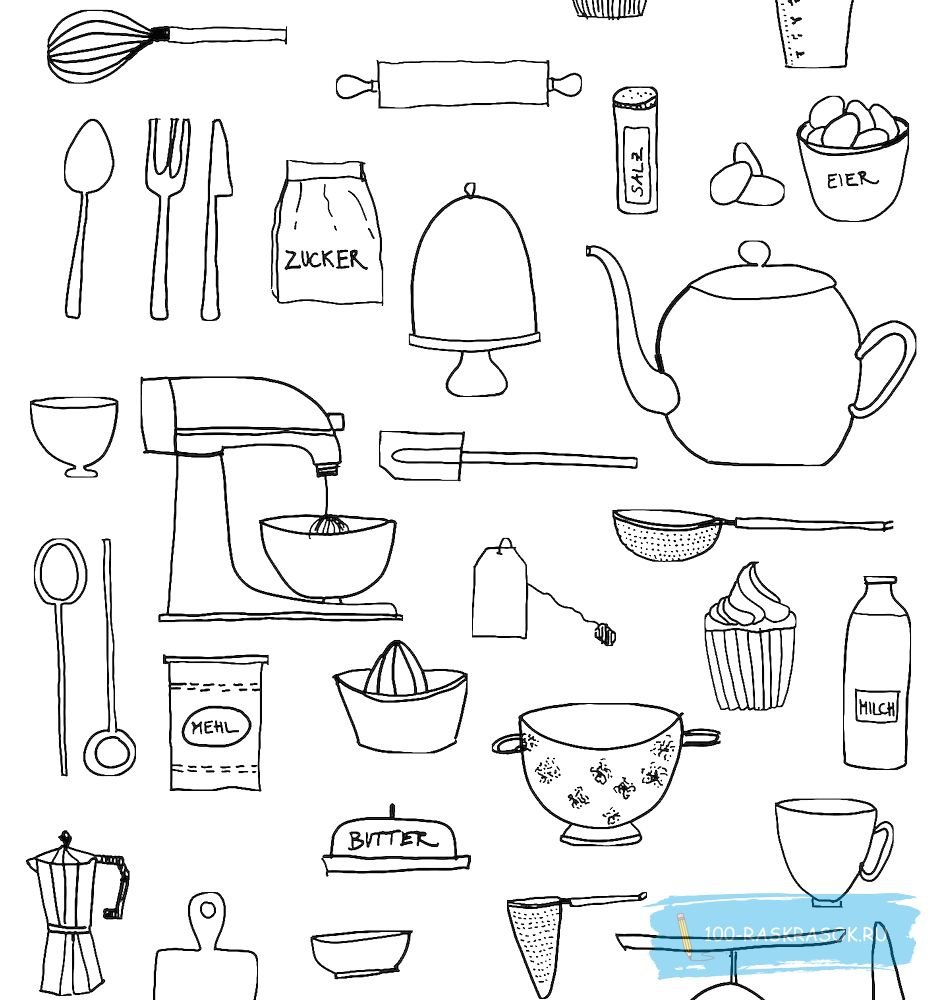 ![Раскраска кухонные принадлежности]()