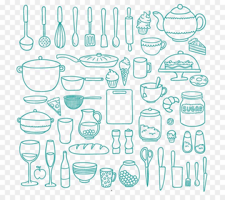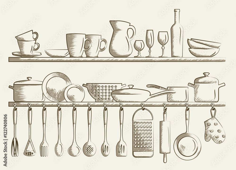 ![Кухонные принадлежности карандашом]()