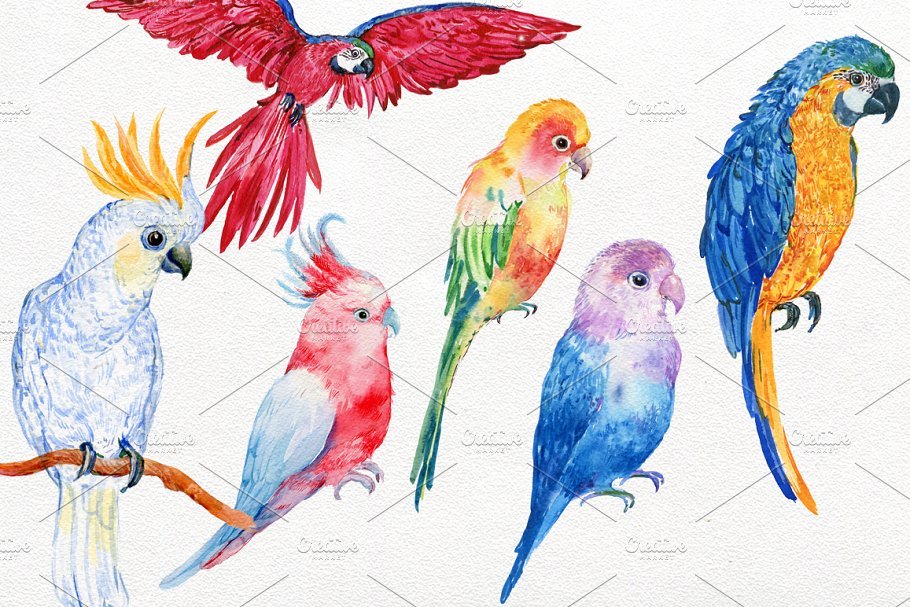 ![Рисование в подготовительной группе разноцветные попугаи]()