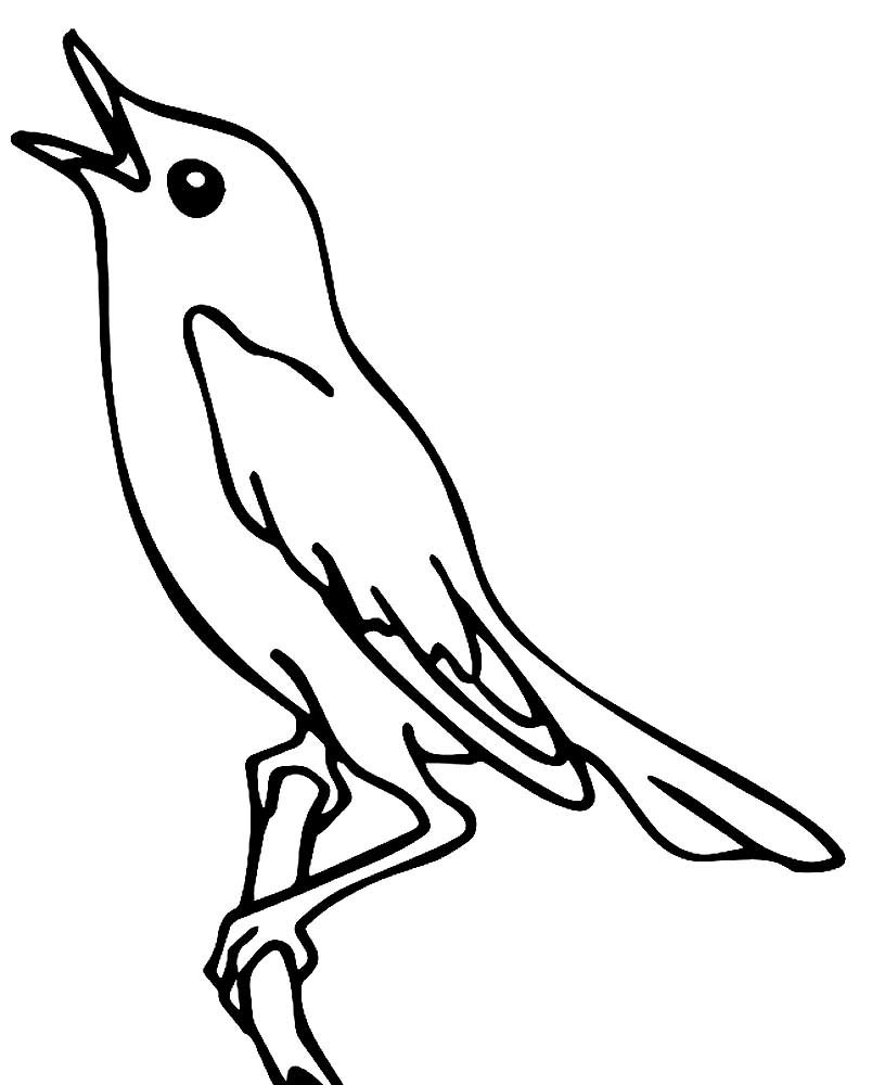 ![Раскраска Соловей на ветке]()