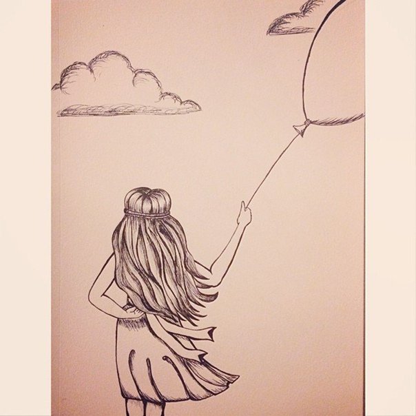 Рисунки для срисовки девочка с шариками