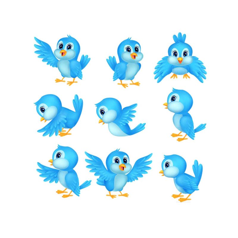 ![Птички голубые мультяшные]()