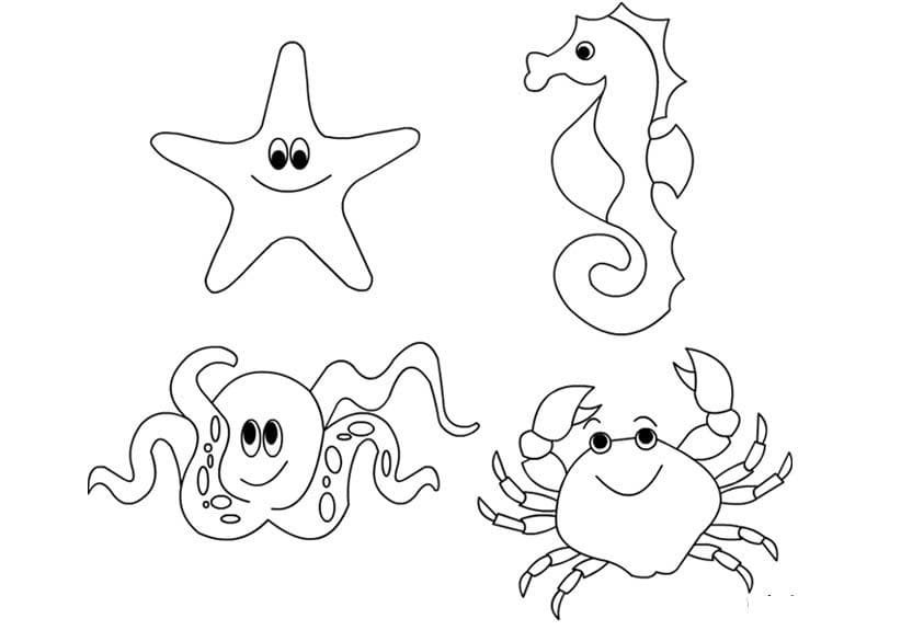 Морские животные раскраска для малышей