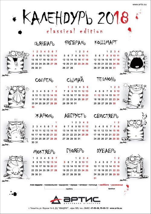 Смешной календарь на год
