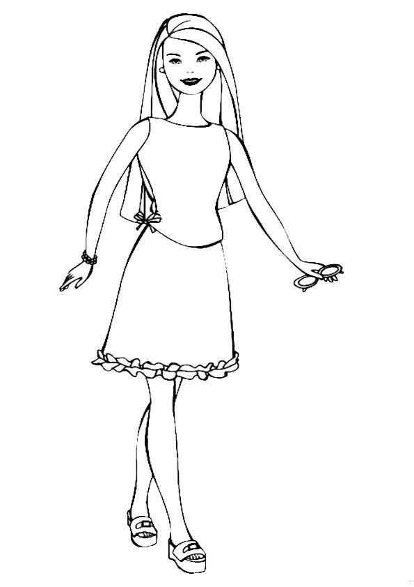 ![Кукла Барби раскраска для девочек]()